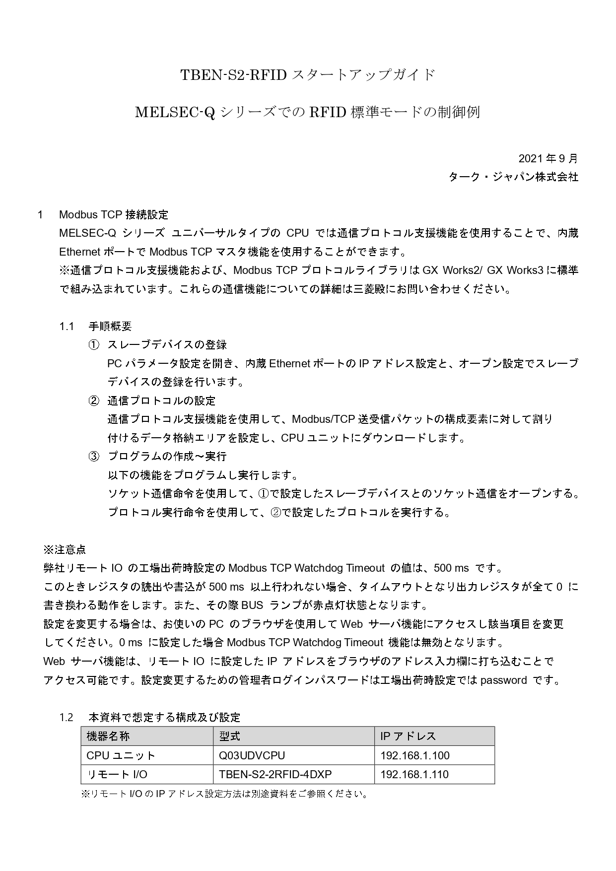 TBEN-S2-RFIDスタートアップガイドMELSEC-QシリーズでのRFID標準モードの制御例