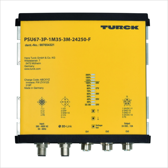 Turck の PSU67 電源ユニットは、一次側に M12 S コード、7/8 インチまたは HAN Q 接続オプションを提供します。